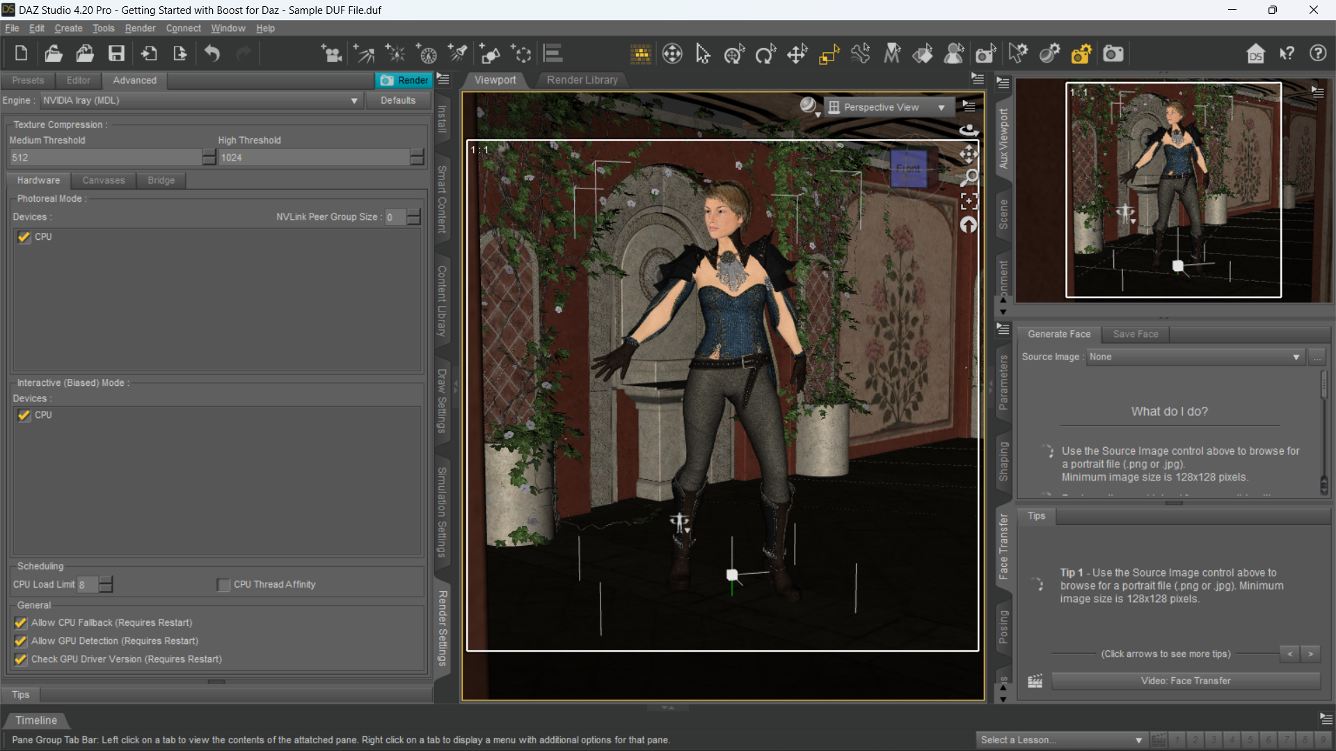 *Getting Started with Boost for Daz* is a simple .duf file that uses only free Daz assets so you don't need to purchase anything to test it.